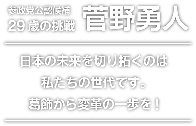 29歳とまだまだ若輩者ではありますが、皆さまの声に真摯に耳を傾け、誰もが安心して暮らせる葛飾区を目指し、全力で取り組んでまいります。
